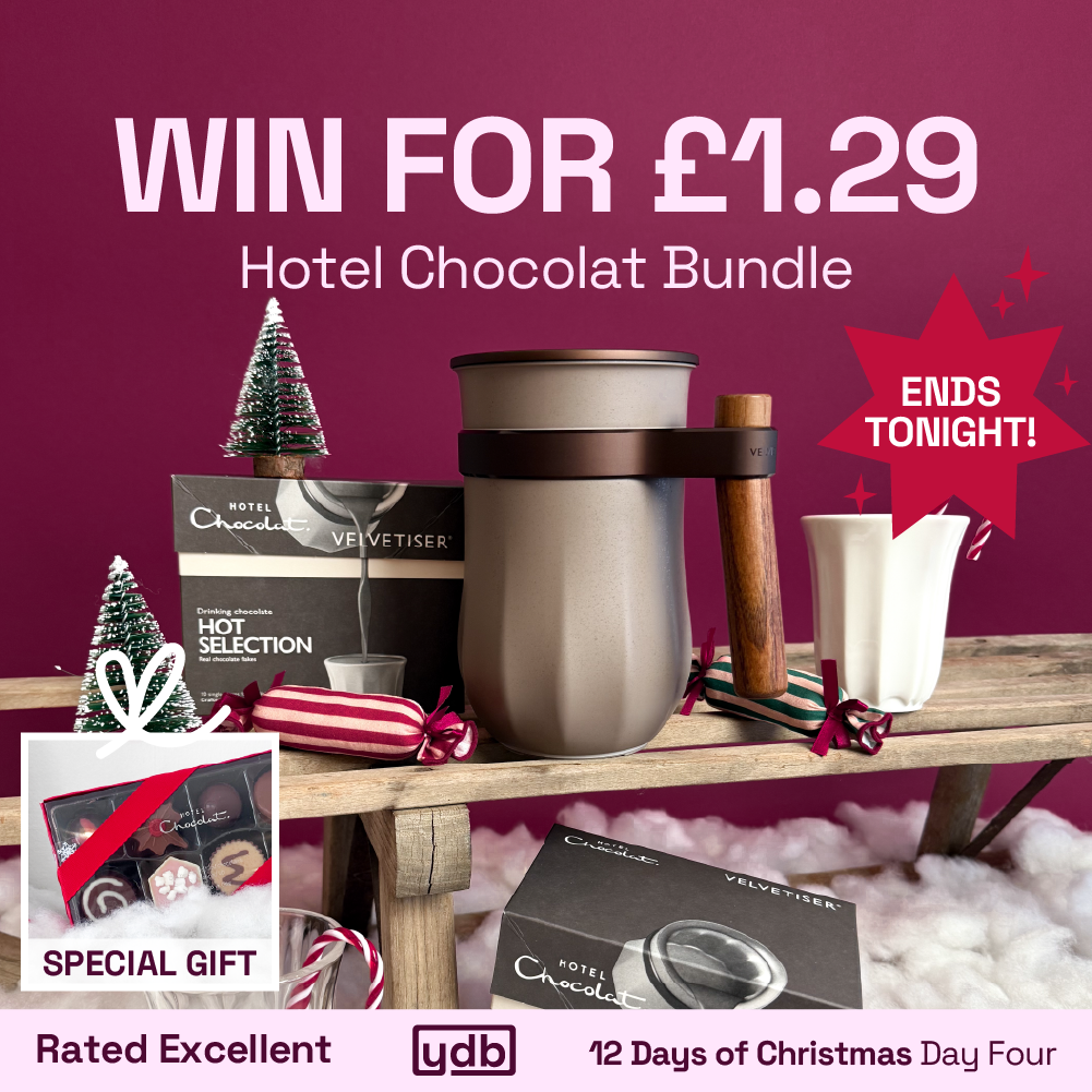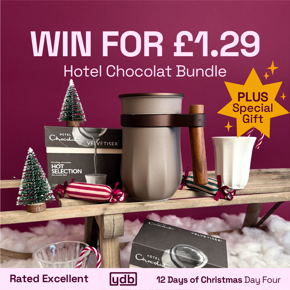 Behind our Day 4 door is this Hotel Chocolat Bundle, the perfect treat on a cold day! RRP £187 – this could be yours for just £1.29. Tickets are limited, so be quick!