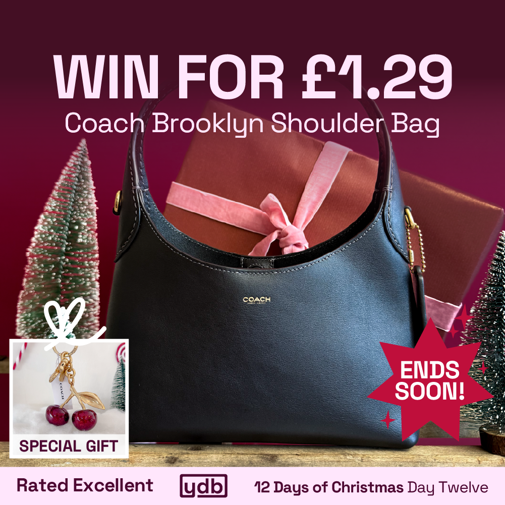 So it’s our final day (😭), and it wouldn’t be a YDB Christmas without giving you guys something from Coach! You can win a Coach Brooklyn in black for just £1.29. Worth £250, this little bag is one of Coach’s most popular accessories – it’s versatile, minimalist and looks great on every outfit. Complete your Christmas look with this gorgeous bag.
