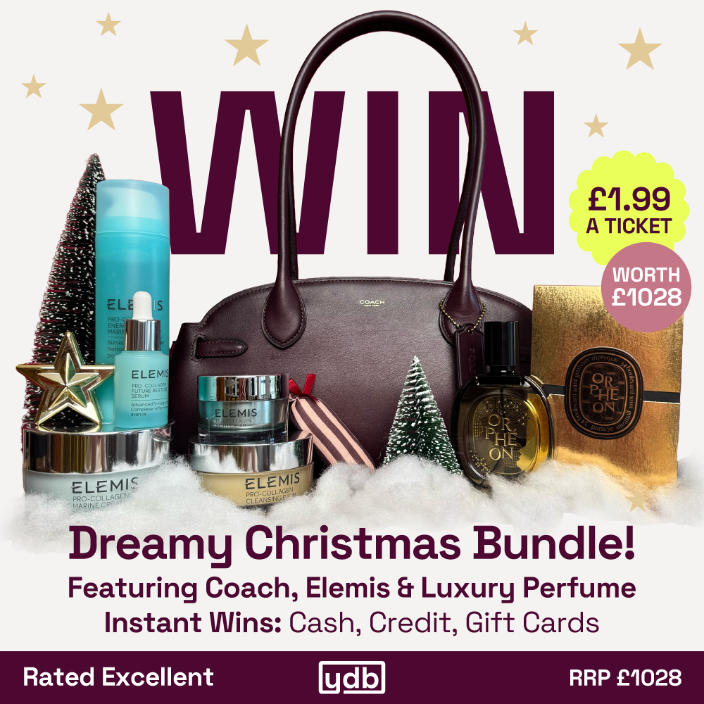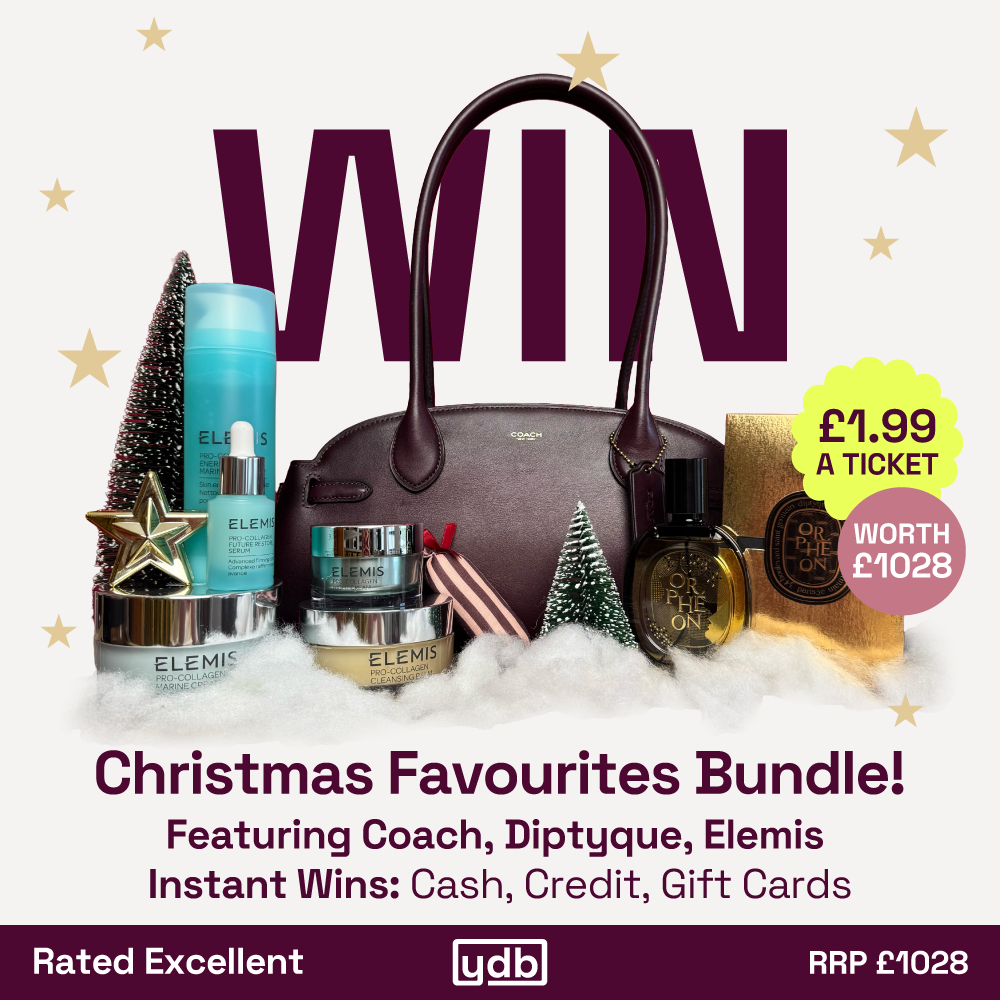 We’ve put our favourite brands in one bundle for a special Christmas Draw! For just £1.99 you can win this trending Coach Empire Carryall, the best-selling Diptyque Orphéon perfume, and an Elemis full skincare routine! This prize is worth £1,028 and includes: