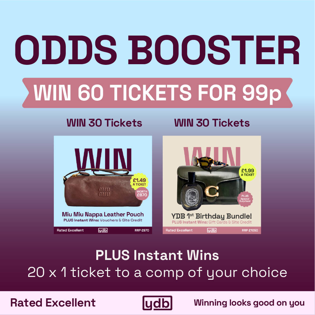 Boost your odds by winning 30 tickets for the Miu Miu and YDB 1st Birthday Bundle competitions!